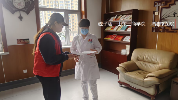 实践感悟:寒假期间,我投身于家乡东宁市结核病防治所的宣传工作,协助医护人员为就诊患者及家属分发宣传手册,普及结核病防治知识、国家免费政策以及日常注意事项。此次实践让我走出校园、贴近社会,在为群众答疑解惑、消除疑虑的过程中,收获了真切的成就感。这既是为家乡医疗卫生事业贡献微薄之力,也是一堂生动的社会实践课,让我在服务他人中深刻体会到责任与担当。