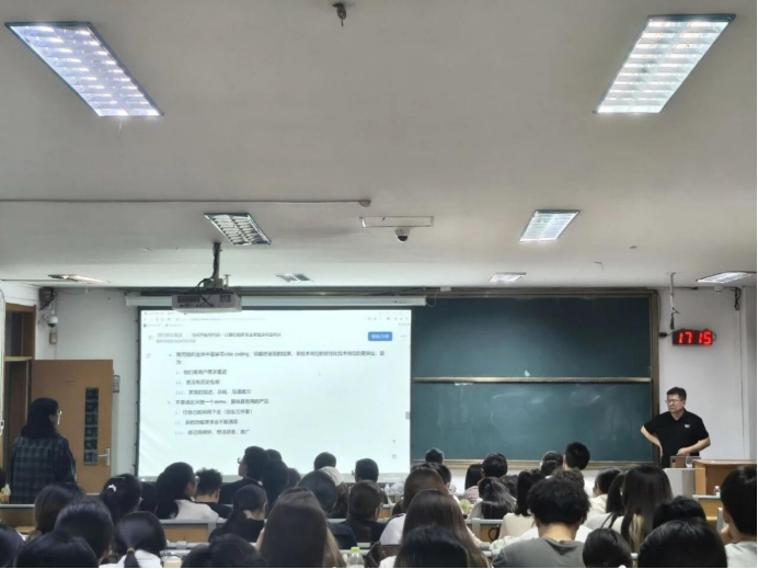 论坛伊始,孔海峰从人工智能早期发展切入,系统介绍人工智能的技术概况、发展历程,并重点讲解深度学习技术。他结合自身经验分享AI领域职业路径与前景,鼓励学生主动融合跨学科知识,为未来发展奠定基础。论坛尾声,同学们围绕AI技术前沿发展、个人职业方向选择等话题积极提问,孔海峰逐一耐心解答,同时鼓励师生主动拥抱AI、不断提升核心竞争力,为国家科技发展贡献力量。