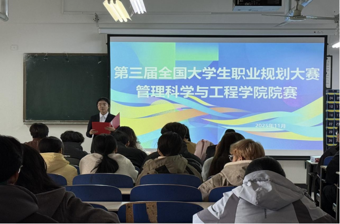 11月25日,学院于6302成功举办第三届全国大学生职业规划大赛院赛。本次比赛邀请王雁霖老师、迟玉瑾老师、刘彩霞老师担任评委。大赛以“筑梦青春志在四方,规划启航职引未来”为主题,分成长、就业两赛道,共计12名学子参赛。