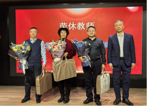 在全场掌声中,荣休教师李贵炳、冯述虎、徐俊艳依次登台。年轻教师代表献花,学院领导颁发荣休纪念品。荣休教师发表感言时深情回顾了数十载执教岁月,言语中满载对教育事业的赤诚、对学院发展的关切以及对青年师生成长的殷切嘱托。